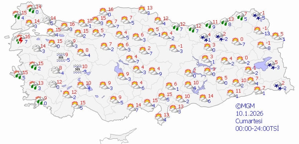 Hava durumuna ilişkin değerlendirmede bulunan Çevre, Şehircilik ve İklim Değişikliği Bakanlığı Meteoroloji Genel Müdürlüğü Hava Tahmin Uzmanı Cengiz Çelik, çarşamba günü yurdun batı bölgelerinde kuvvetli lodosla birlikte sağanak geçişleri görüleceğini bildirdi.