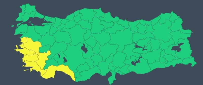 Sarı kodla uyarılan 6 il şu şekilde sıralandı;