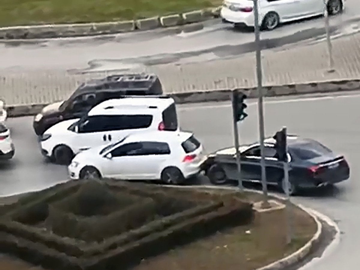 Diğer sürücülerin araya girmesiyle otomobiline binen şüpheli, eşinin aracına defalarca çarparak yoluna devam etti.