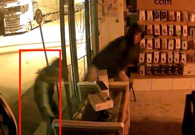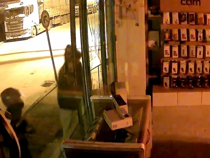 Şüpheliler, vitrin camlarını da kırarak 3 cep telefonu, 3 akıllı saat, 3 kablosuz kulaklık ve tablet çaldı.
