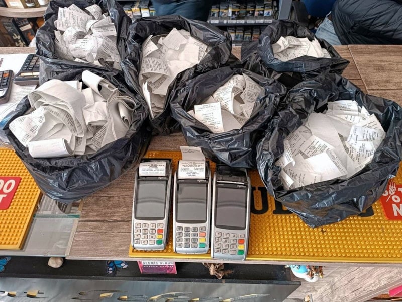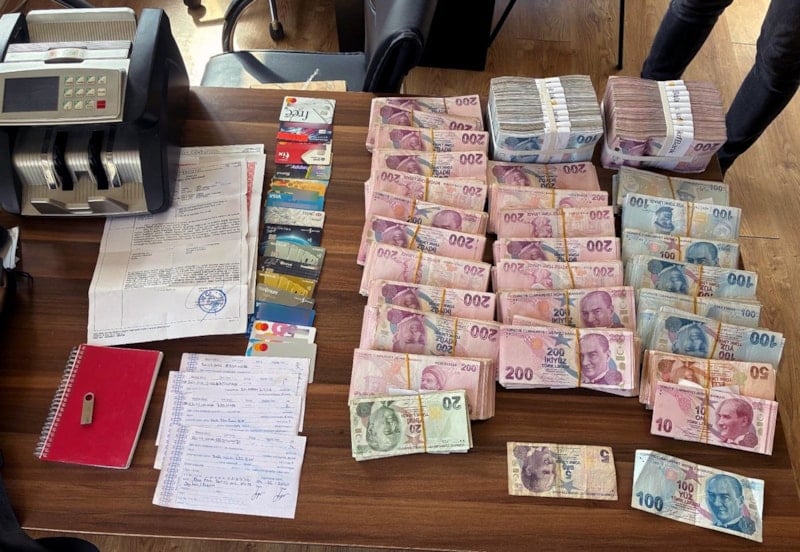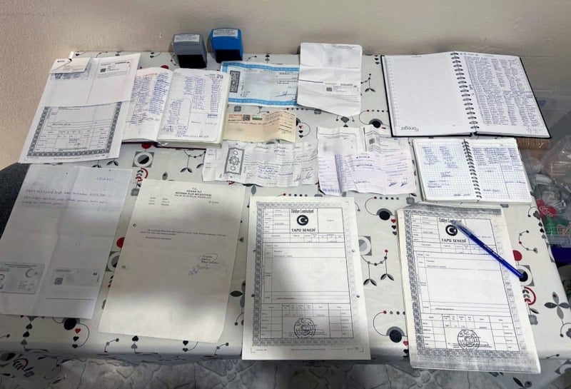 Adreslerde yapılan aramalarda, 910 bin 950 lira ile 8 pos cihazı, farklı kişilere ait 107 kredi kartı ve 11 tapu belgesi, 8 bin 545 fiş, 11 tapu belgesi, 5 milyon 167 bin lira değerinde 64 senet ile çek ve para sayma makinesi ele geçirildi.