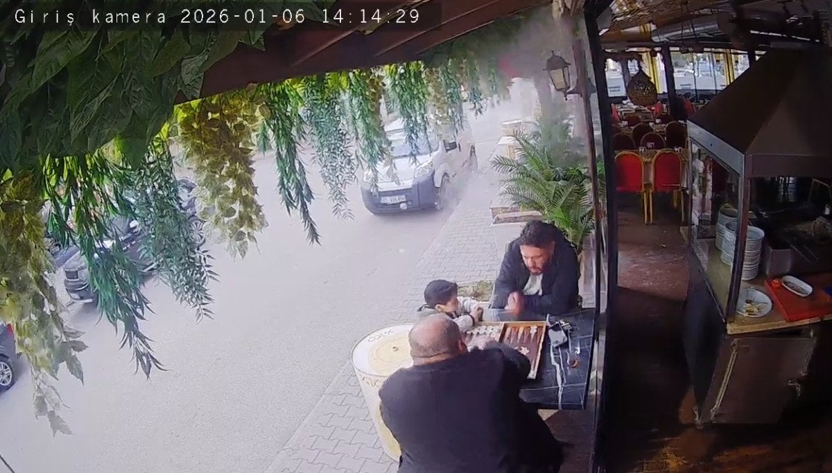 Restoranda tavla oynayan 2 kişi ve yanlarındaki küçük yaşlardaki çocuk, panik yaşad