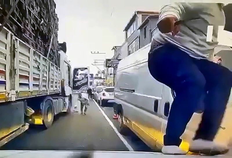 Mehmet Necmi Z.’nin oğlu Mehmetcan Z. elinde bıçakla tırdan inip, otomobilin kaputuna çıktı ve tehditler savurdu.