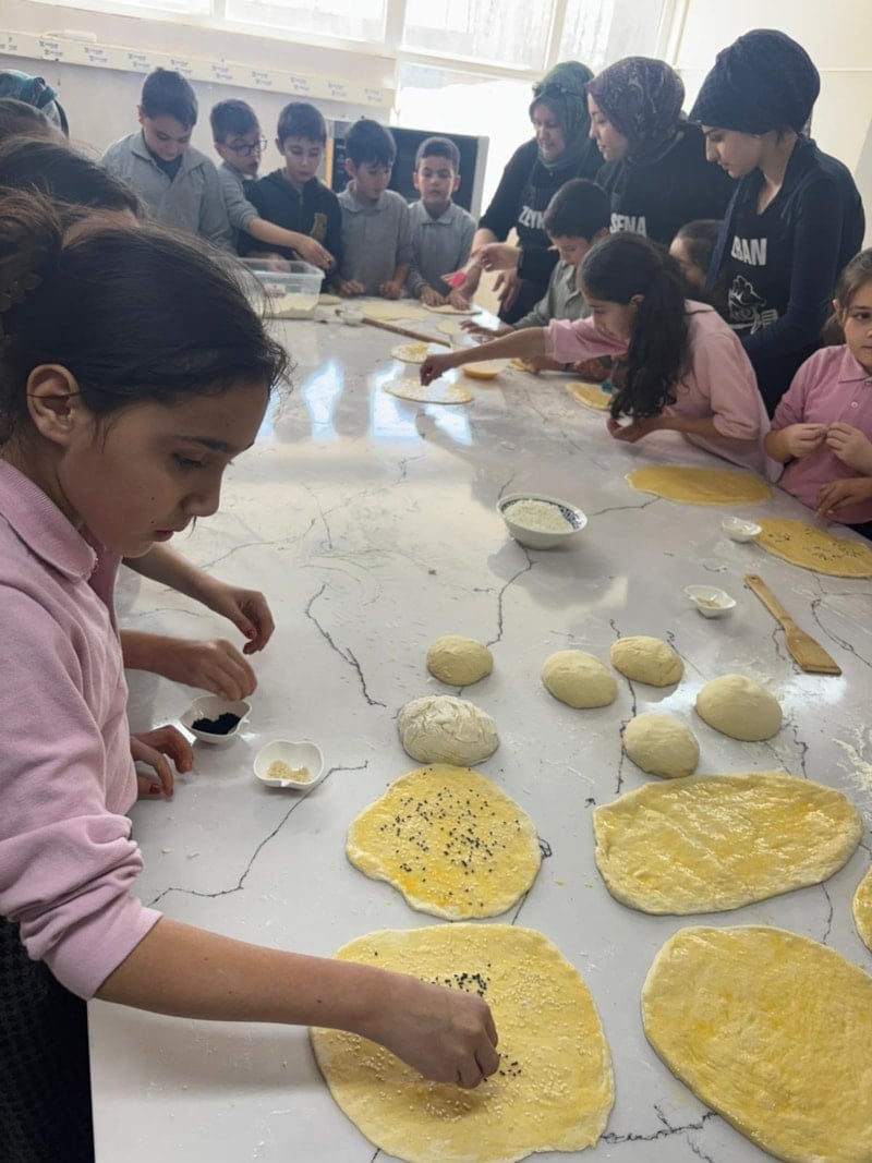 Hamuru şekillendirip fırına veren minikler, pidelerin pişmesini sabırsızlıkla bekledi. Fırından çıkan sıcacık pideler, çocukların yüzündeki mutluluğu ikiye katladı.