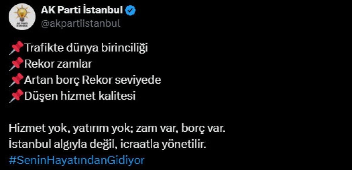 AK Parti İstanbul İl Başkanlığı, megakentin sorunlarına ilişkin paylaşım yaptı.