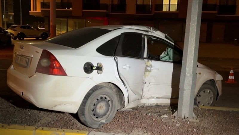 Kontrolden çıkan otomobil önce refüjdeki ağaca, sonra da aydınlatma direğine çarparak durabildi.