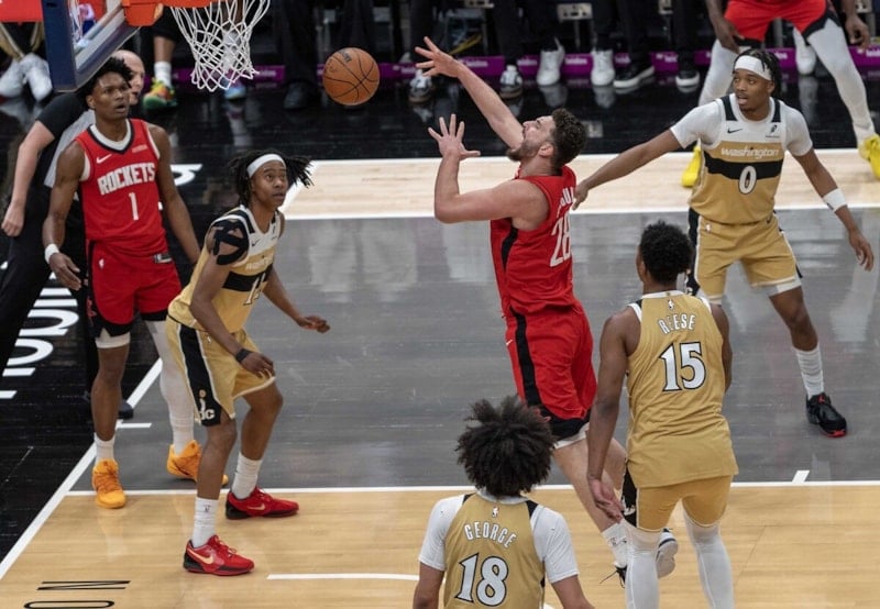 Capital One Arena’da oynanan maçta milli basketbolcu Alperen Şengün 32 sayı, 13 ribaunt, 2 asistlik performansıyla galibiyette önemli rol oynadı.