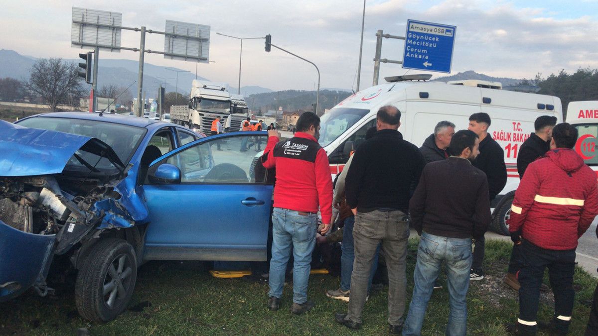 Amasya’da kırmızı ışıkta bekleyen otomobile arkadan otomobil çarptı