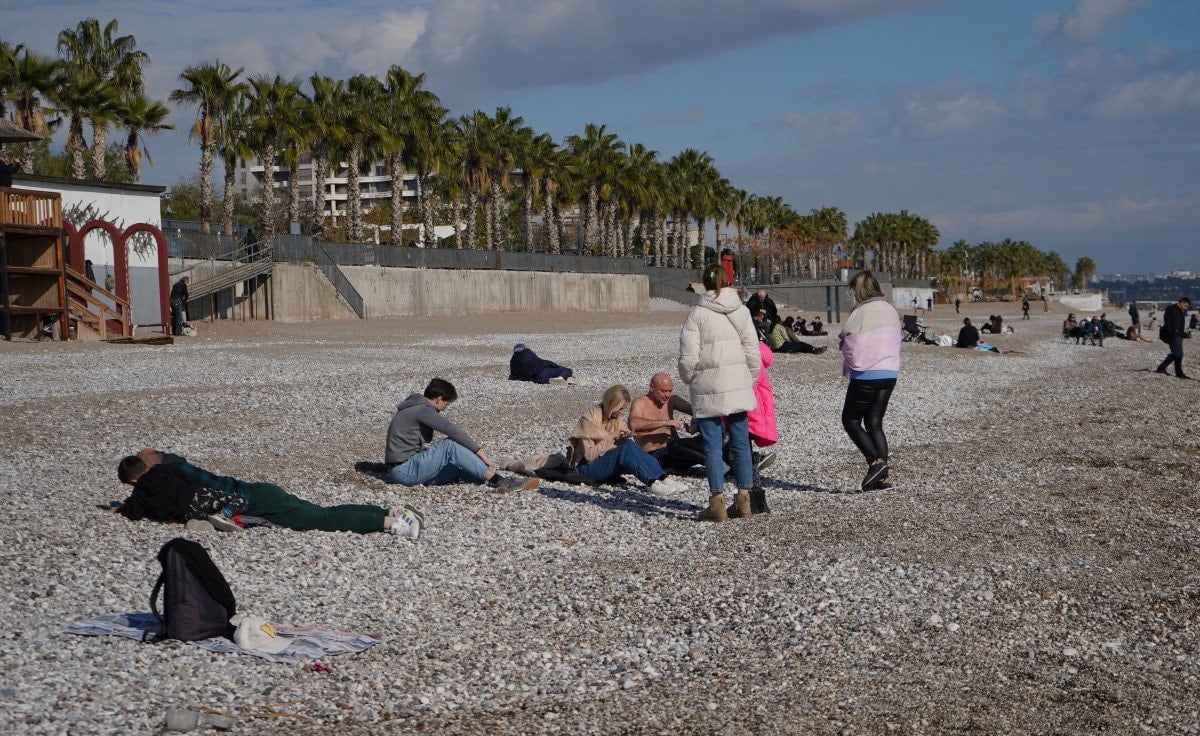 Antalya, yılın ilk hafta sonunda güneşli havayı fırsat bilerek sahillere akın etti