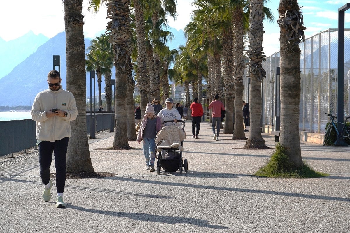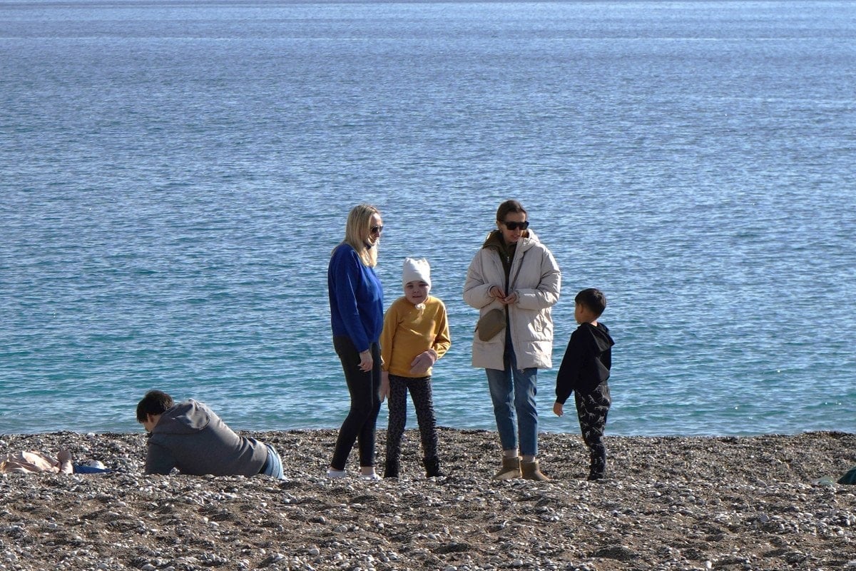 Güneşli havayı fırsat bilen turistler ve kentte yaşayanlar ise aileleriyle Konyaaltı Sahili’ne geldi.