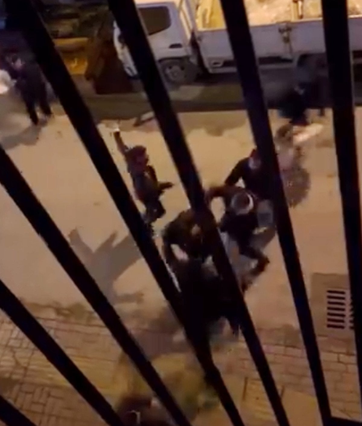 Görüntülerde tarafların birbirlerine zincirlerle saldırdığı anlar yer aldı.