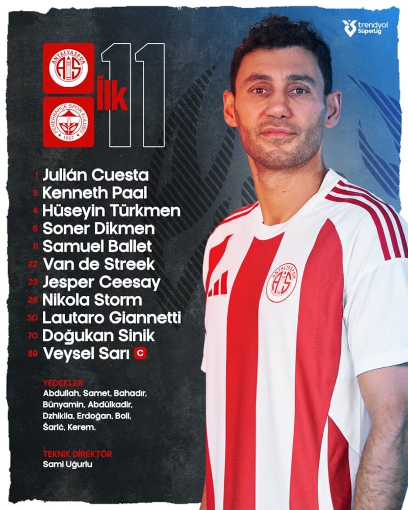 Antalyaspor – Fenerbahçe maçının ilk 11’leri