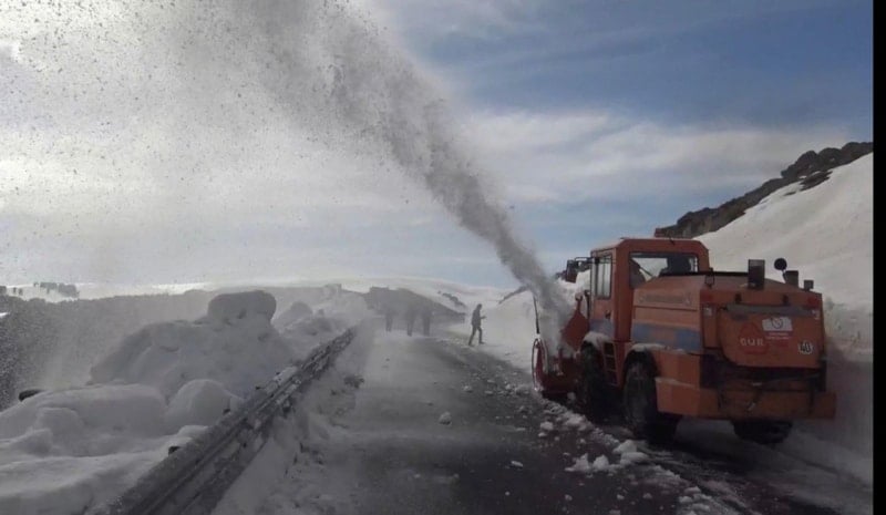 Kar kalınlığı yer yer yaklaşık 3 metreyi geçtiği bölgede 4 ay sonra karla mücadele çalışması başlatıldı.