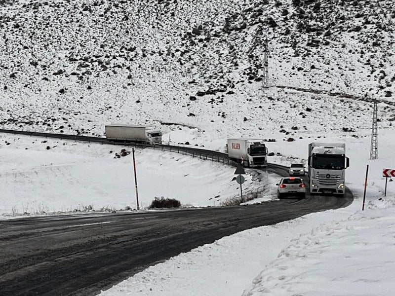 Ardahan’da buz tutan rampada tır şoförlerinin çilesi