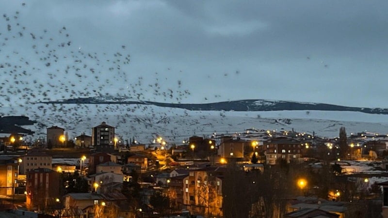 Dün akşam saatlerinde kargalar, sürüler halinde dakikalar boyunca gökyüzünde daireler çizerek uçtu.
