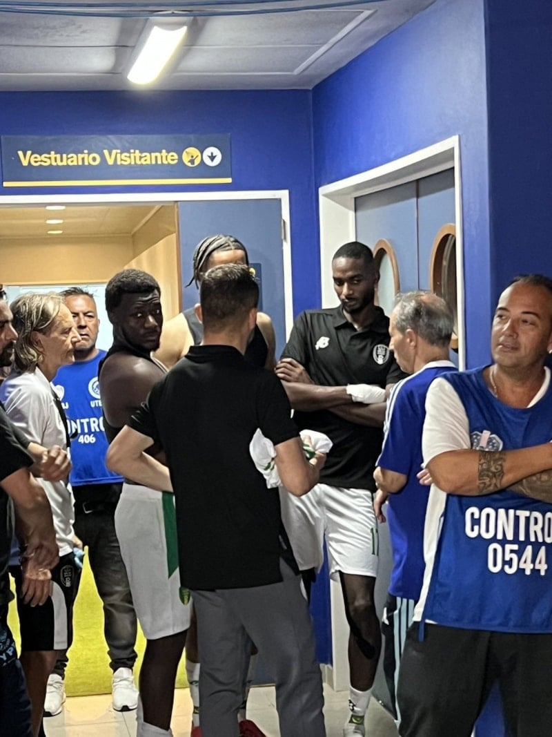 Kısa süren bu anların sonrasında güvenlik görevlileri, 38 yaşındaki futbolcuyu hızlıca tünele ve ardından soyunma odasına götürdü.