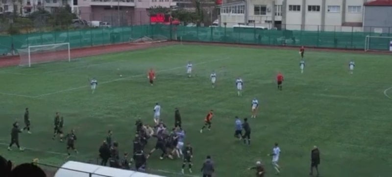 Maçın hakemi oyunu durdururken, sahaya giren polis ekipleri müdahale ederek kavgayı ayırdı.