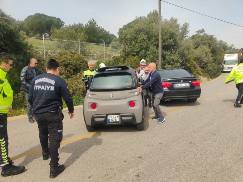 Aydın’ın Kuşadası ilçesinde öğlen saatlerinde, 35 CON 676 plakalı elektrikli otomobil ile 64 SF 321 plakalı otomobil kafa kafaya çarpıştı. Kazada, elektrikli araç sürücüsü ve araçtaki yolcular ile diğer otomobilin sürücüsü yaralandı.