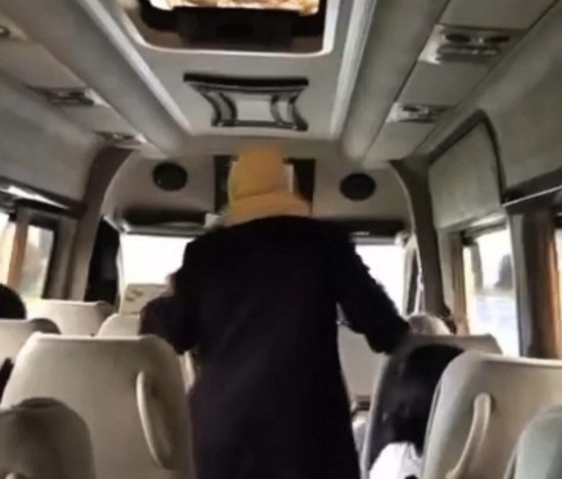 Araçtaki arbede, başka bir yolcu tarafından cep telefonu kamerasıyla kayda alındı.