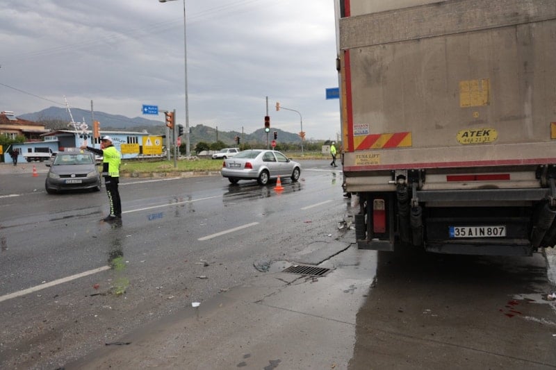 Işık ihlali yapan kamyon önce bir otomobile arkadan çarptı ardından da yol kenarındaki elektrik direğine çarptı.