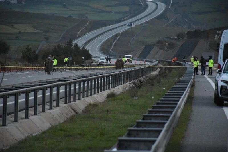 İstanbul-İzmir Otoyolu’nun Karesi mevkisinde yol kenarına düşen uçağın enkazı çevreye dağıldı.