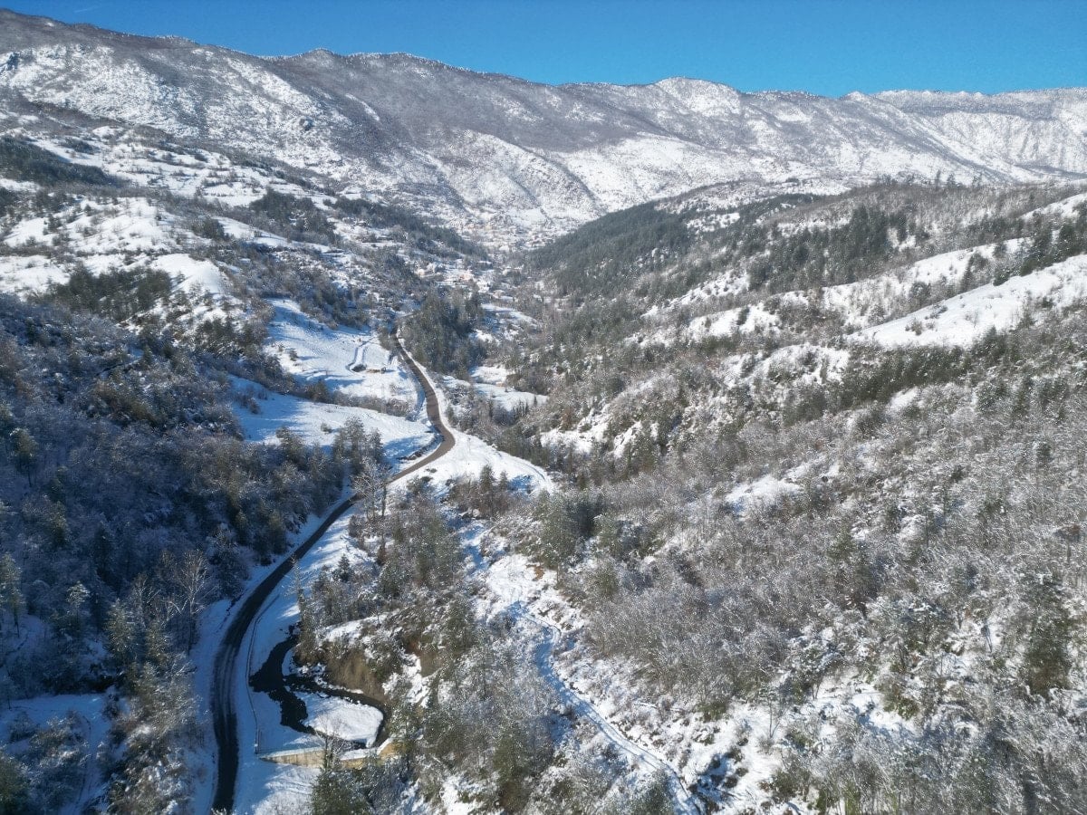 Milli parkın eteklerinde bulunan beyaz örtüyle kaplanan Drahna Vadisi’ndeki Ulukaya, Alıçlı, Çıraklar, Köklü, Çamdibi, Kozanlı, Aşağıdere, Yukarıdere köyleri ve dağlardaki kar manzarası dron’la görüntülendi.