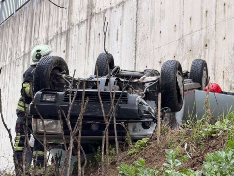 Yağış nedeniyle kayganlaşan yolda, Tevfik Gül’ün kontörlünü yitirdiği otomobil, virajda savrulup yaklaşık 10 metre yükseklikteki istinat duvarını aşarak toprak zemine uçtu.
