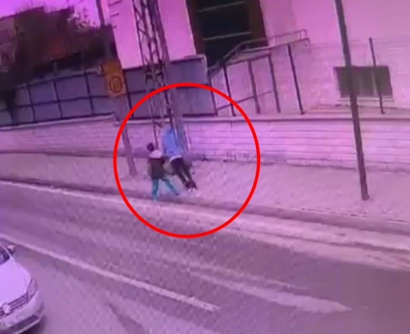 Polis olayla ilgili inceleme başlatırken, olay anı çevredeki bir iş yerinin güvenlik kamerasına yansıdı.