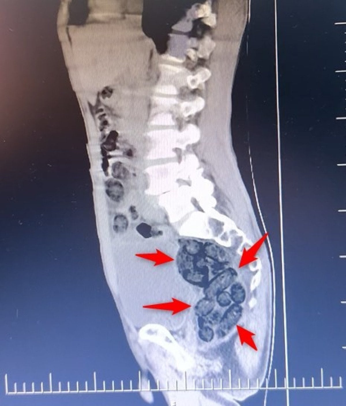 Yapılan incelemeler sonucunda yabancı uyruklu şahsın midesinde 64 parça halinde toplam 472 gram uyuşturucu maddesi metamfetamin olduğu belirlendi.