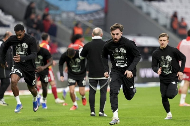 Öte yandan siyah-beyazlı futbolcular da ısınma hareketleri öncesinde sahaya “Seni hiç unutmayacağız yüzyılın şampiyonu” pankartıyla çıktı.