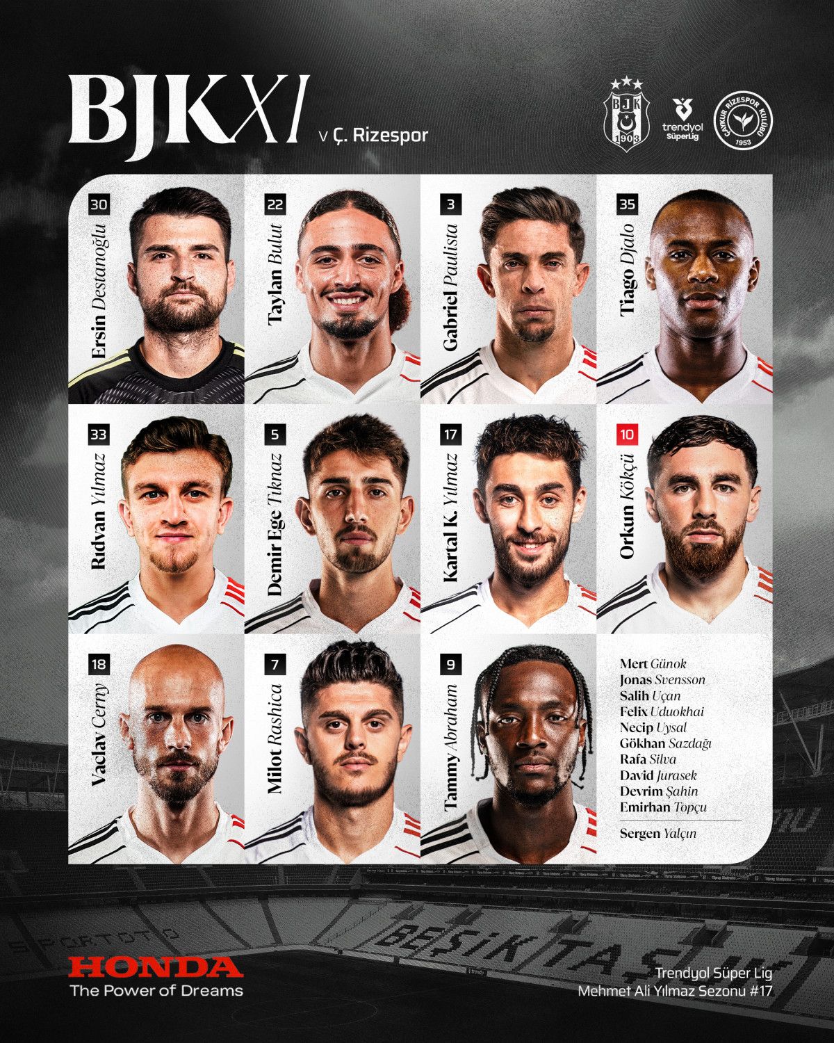 Beşiktaş – Rizespor maçının ilk 11’leri