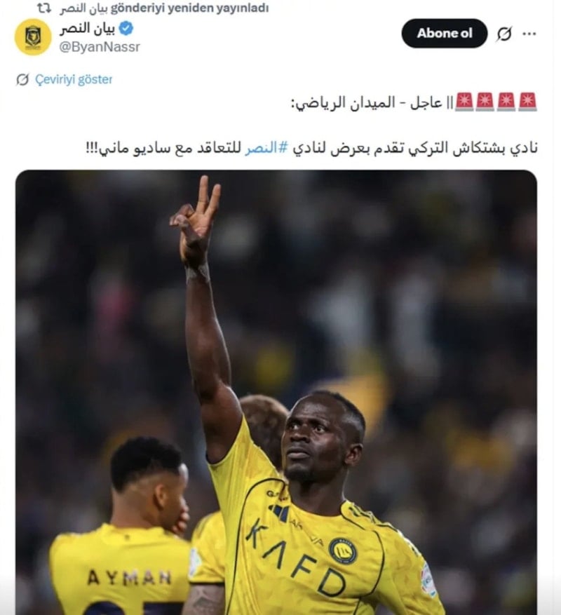 Bu kapamda Arap basını, Beşiktaş’ın Sadio Mane’ye teklif yaptığını duyurdu.