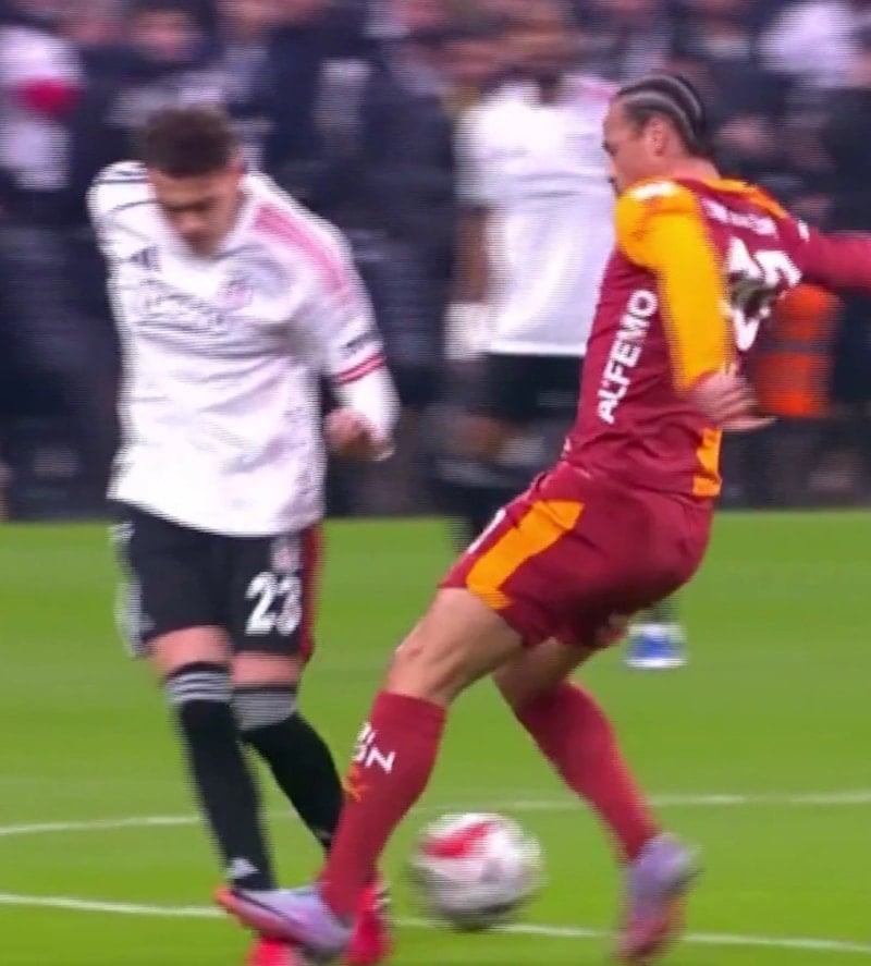 Dolmabahçe’de oynanan kritik derbinin ilk yarısında tartışmalı bir pozisyon yaşandı.