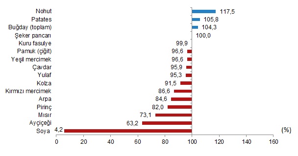 Bitkisel ürünlerde en yüksek yeterlilik derecesi %594,9 ile kayısı ve zerdalide gerçekleşti