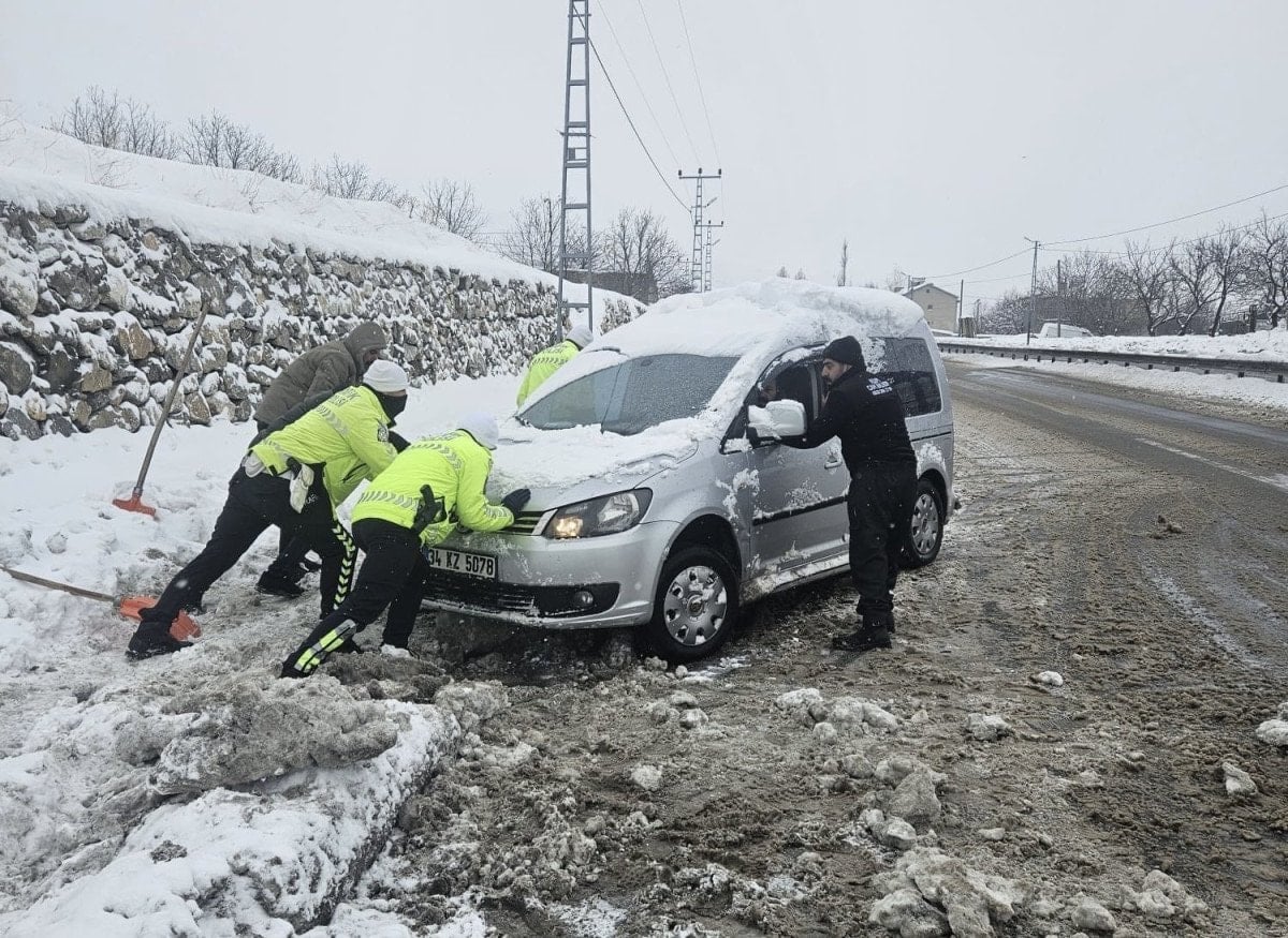 Sürücüler, kendilerine yardımcı olan ekiplere teşekkür etti. Yetkililer, sürücüleri tipi ve buzlanmaya karşı dikkatli olmaları uyarısında bulundu.
