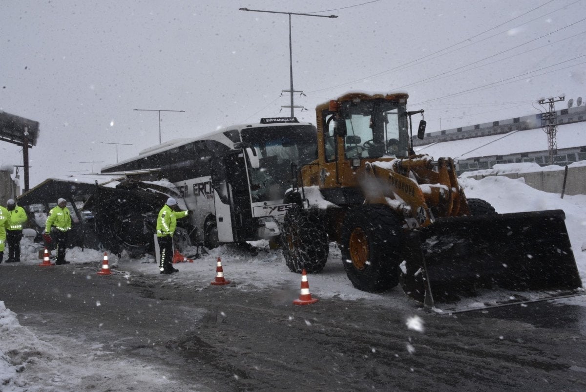 Diyarbakır’dan Bitlis yönüne seyir halinde olan C.D. idaresindeki Yeşil Erciş firmasına ait 46 AEG 334 plakalı yolcu otobüsü, Arıcılık mevkiinde yoğun kar nedeniyle sürücüsünün direksiyon hâkimiyetini kaybetmesi sonucu polis kontrol noktasında bulunan kulübeye çarptı.