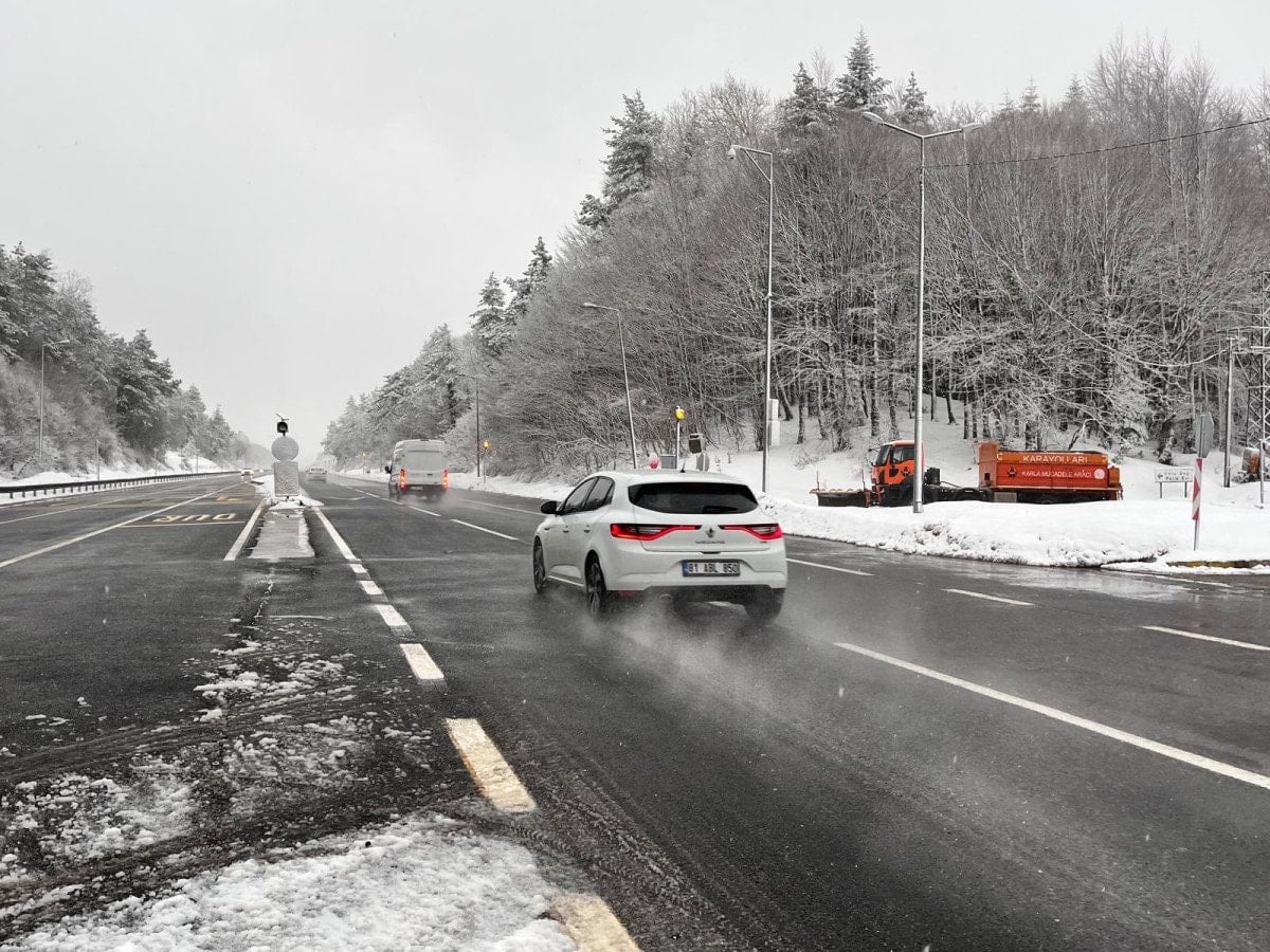 Bolu Dağı’nın D-100 kara yolu geçişinde gece kar yağışı aralıklarla etkili olurken, sabah saatlerinde durdu.