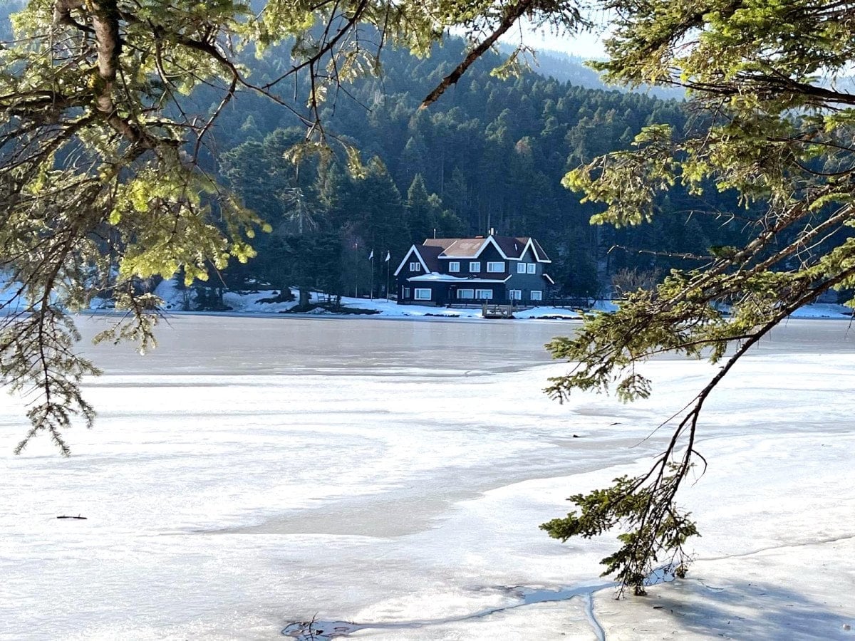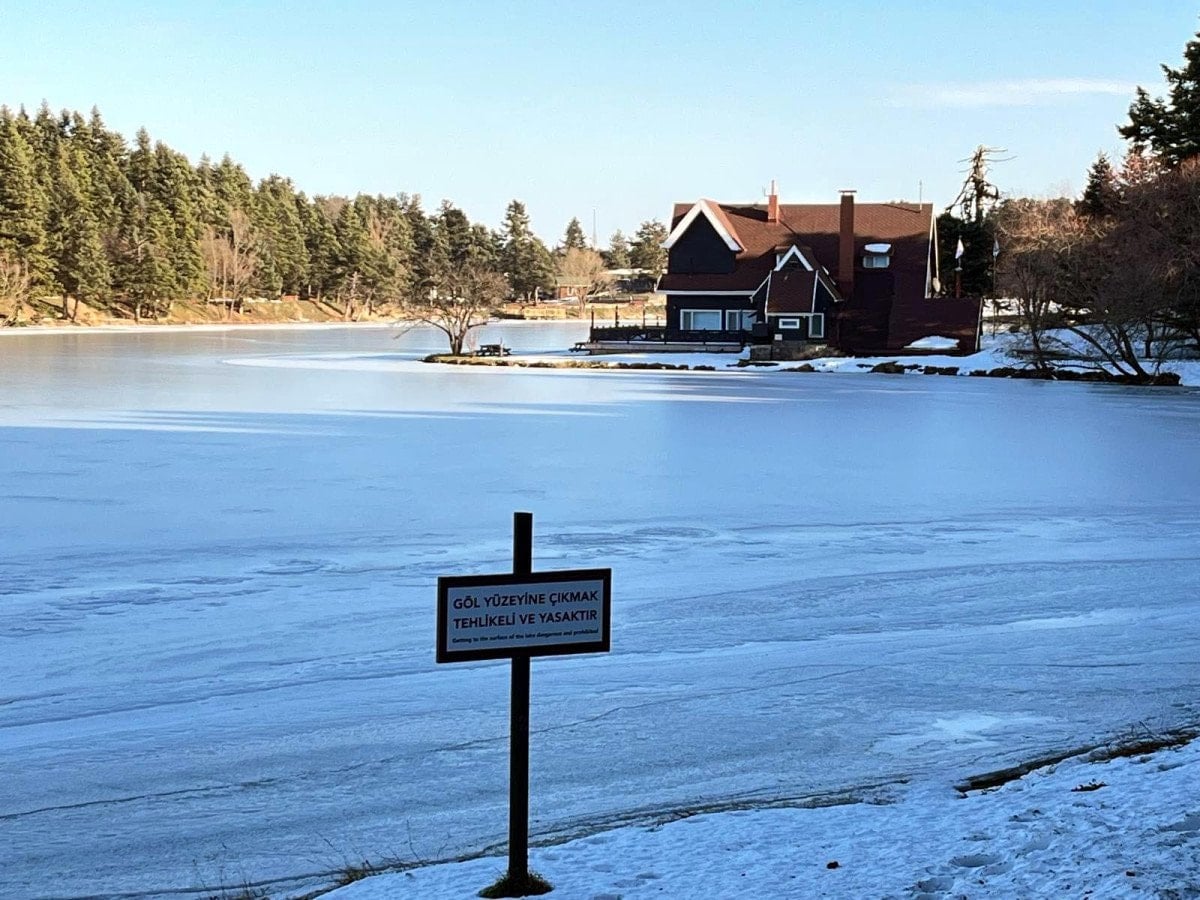 Eşsiz manzarasıyla dikkat çeken 1217 metre rakımlı tabiat parkındaki 4,5 hektar büyüklüğündeki gölün yüzeyi tamamen buzla kaplandı.
