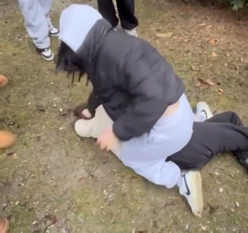 Arbede sırasında yere düşen öğrencilerden birine, parkta bulunan gruptaki diğer kızlar da tekme atarak saldırdı.