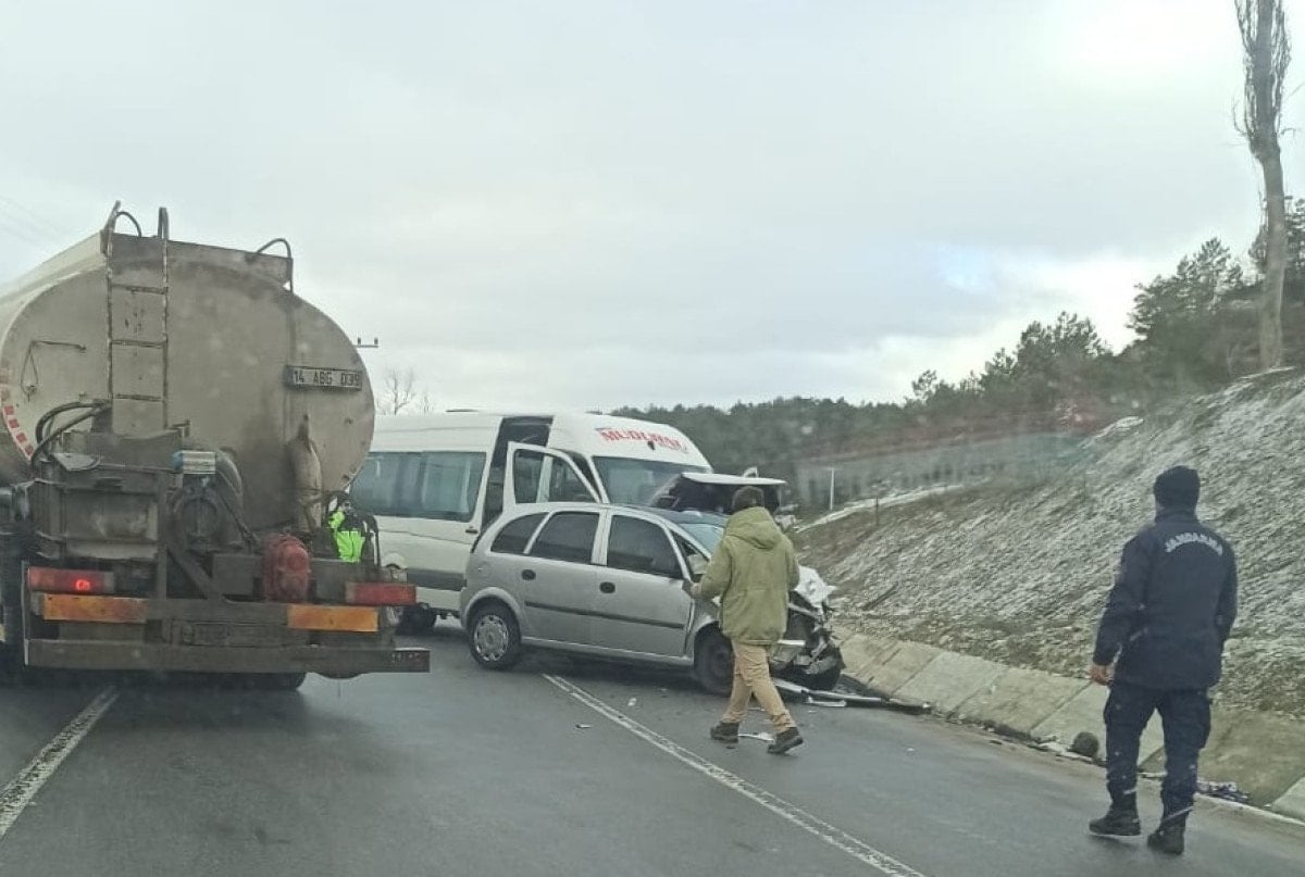 Bolu-Mudurnu kara yolunun Yazılar köyü mevkisinde seyir halindeyken gizli buzlanma nedeniyle kontrolden çıkan Ali Y. idaresindeki otomobille, aynı yönde giden Tahsin G. yönetimindekiyolcu minibüsü çarpıştı.