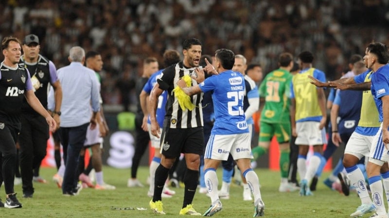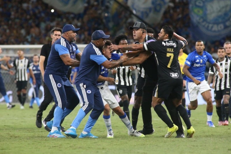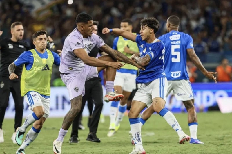 Karşılaşmanın son bölümünde Atletico Mineiro kalecisi Everson ile Cruzeiro oyuncusu Christian arasındaki ikili mücadele sonrası tansiyon bir anda yükseldi.