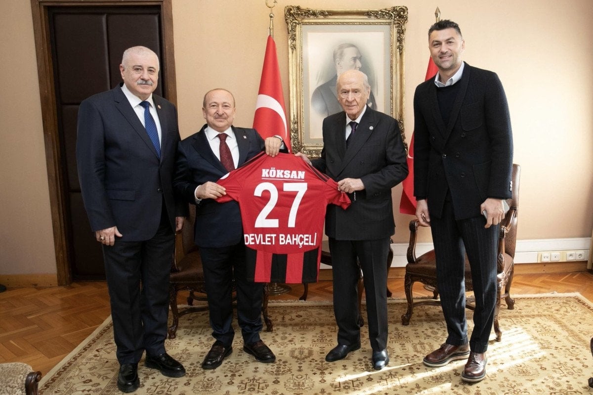 Gaziantep FK Başkanı Memik Yılmaz ve teknik direktörü Burak Yılmaz, Bahçeli’yi ziyaret etti.
