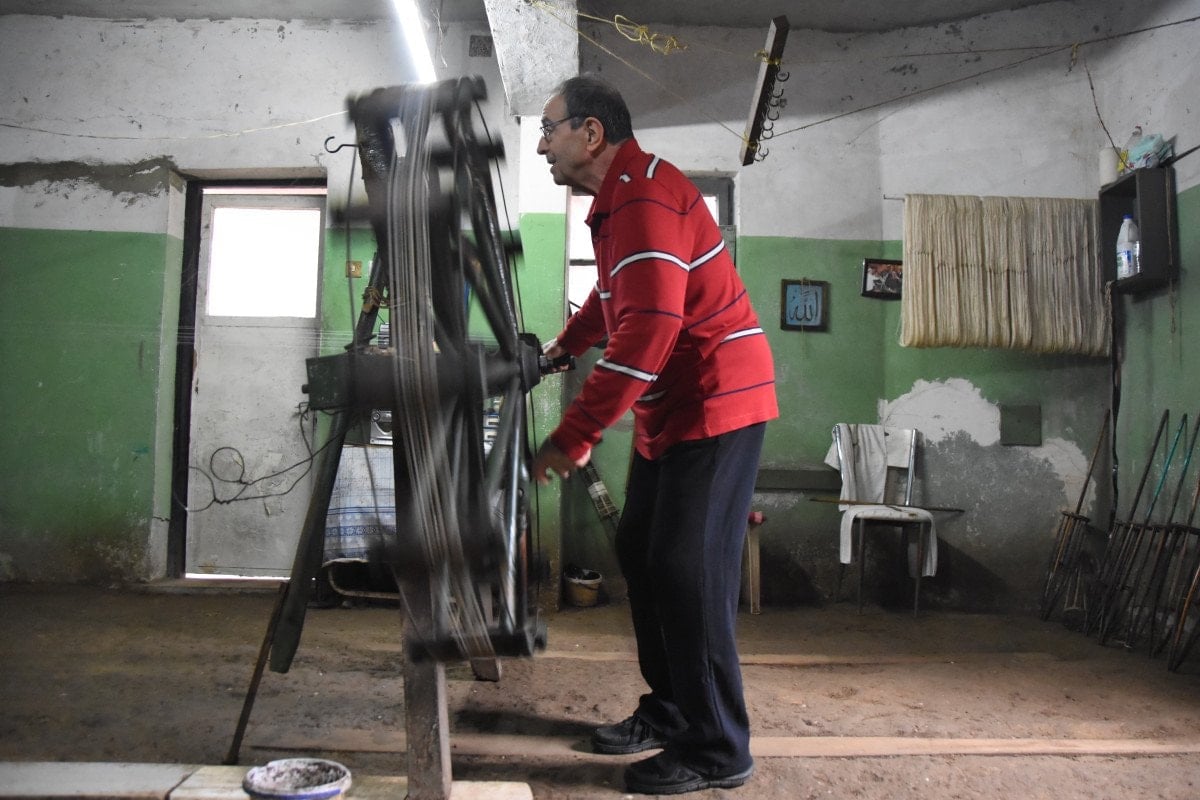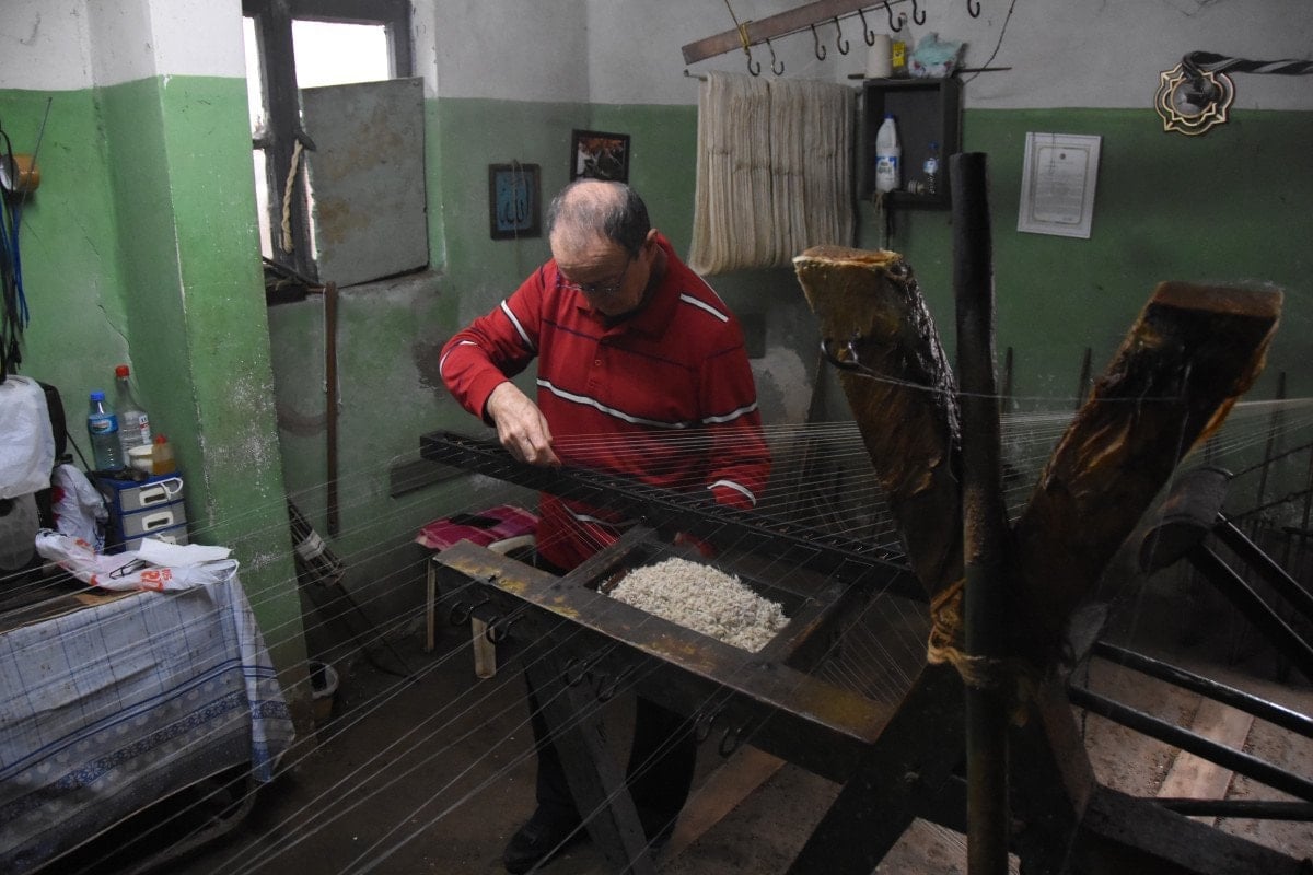 Geleneksel yöntemlerle iplik büken Şengünalp’in çalışma temposu, dikkat çekiyor.