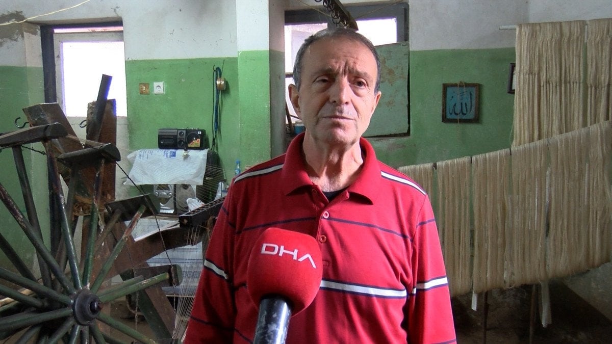 Günde ortalama 6 saat mesai harcayan Şengünalp, eski yöntemlerle ham ipekten ip hazırlamak için her gün yaklaşık 20 kilometre koşuyor.