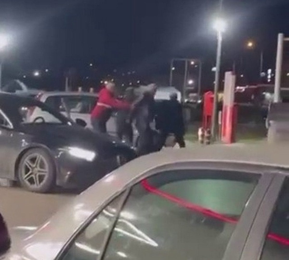 Tartışmanın kavgaya dönüşmesiyle taraflar birbirlerine yumruk ve tekmelerle saldırdı. Akaryakıt istasyonunu adeta boks ringine çeviren şahısların kavgası, çevredeki vatandaşların araya girmesiyle güçlükle sonlandırıldı.
