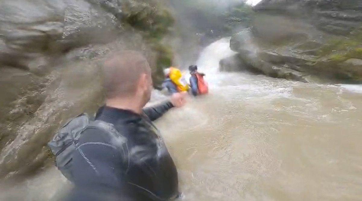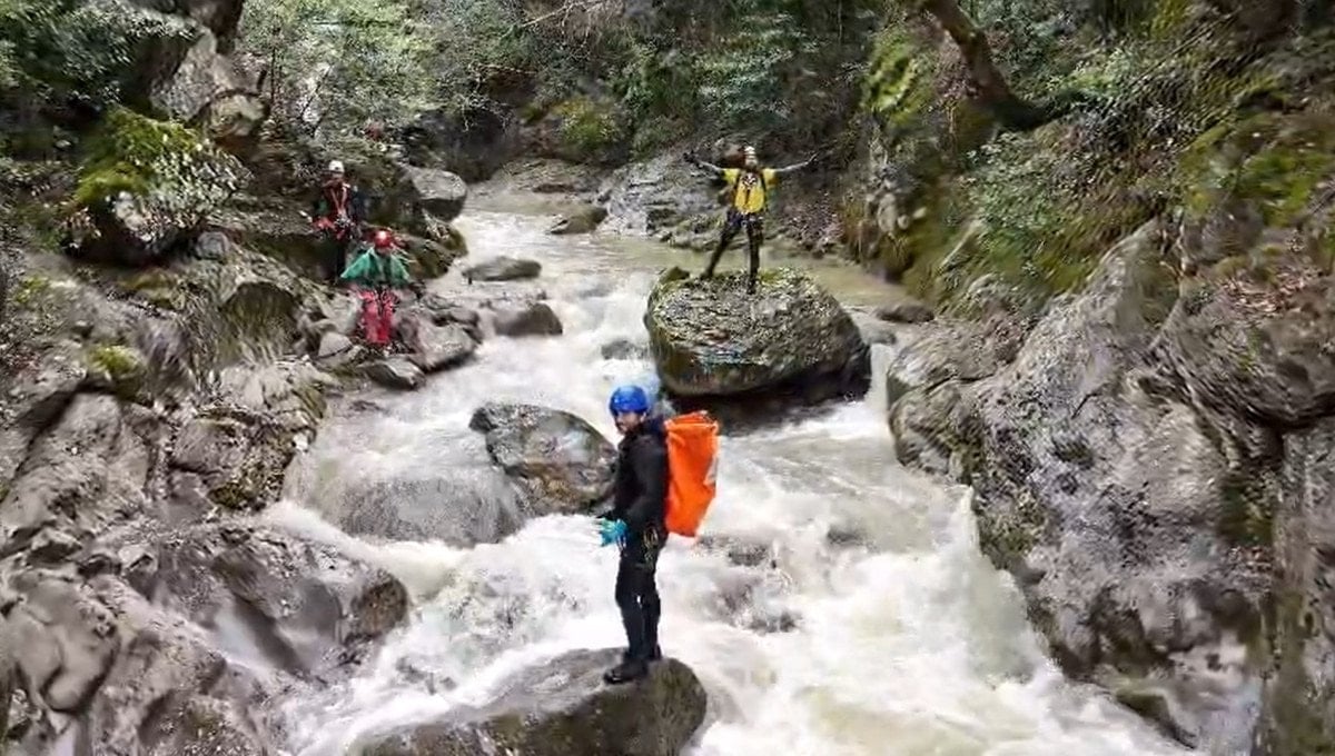 Bursa’da dağcıların su seviyesi yükselen deredeki zor anları