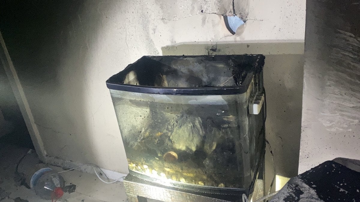 Yangın sırasında akvaryum içerisinde bulunan balıklar, itfaiye ekipleri tarafından akvaryumdan çıkarılarak kurtarıldı.