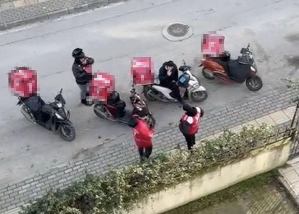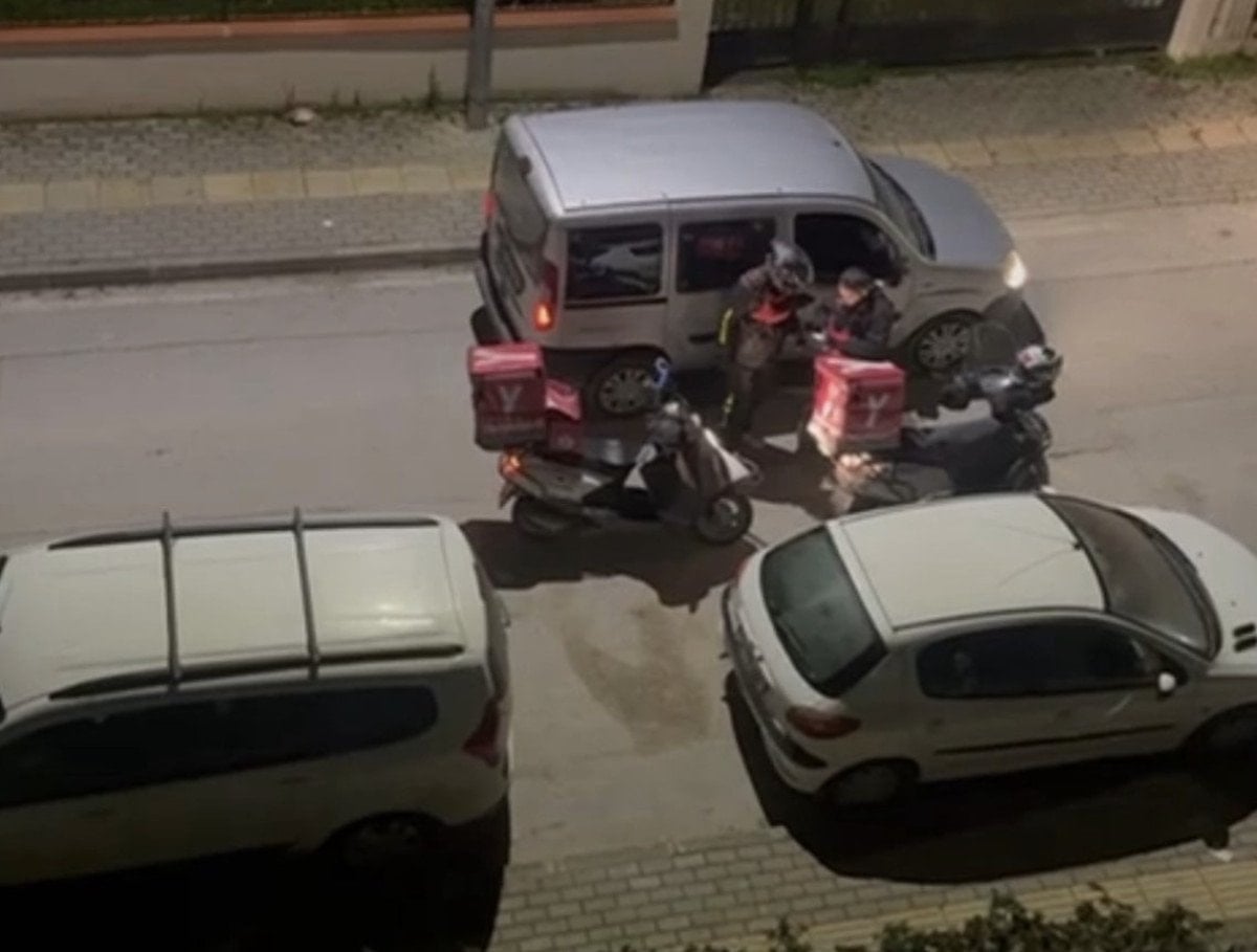 Yalçuva, binanın önünde yan yana sıralanan motokuryeleri, cep telefonu kamerasıyla da görüntüledi.