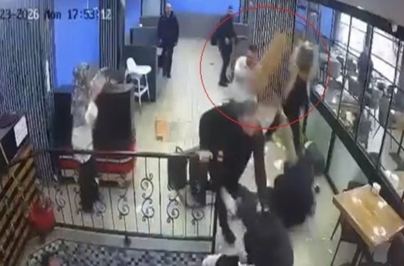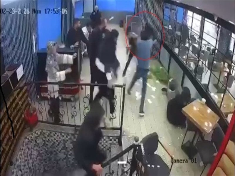 Masa ve sandalyeler ile iş yerindeki bazı eşyaları birbirine atan taraflar diğer müşterilerin araya girmesi ile güçlükle ayrılırken, kavga güvenlik kamerasına yansıdı.