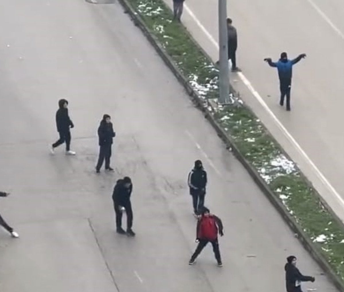 Bursa’nın İnegöl ilçesinde yaşları küçük yaklaşık 10 çocuk, caddeden geçen özel halk otobüslerinin camlarına kar topu attı.